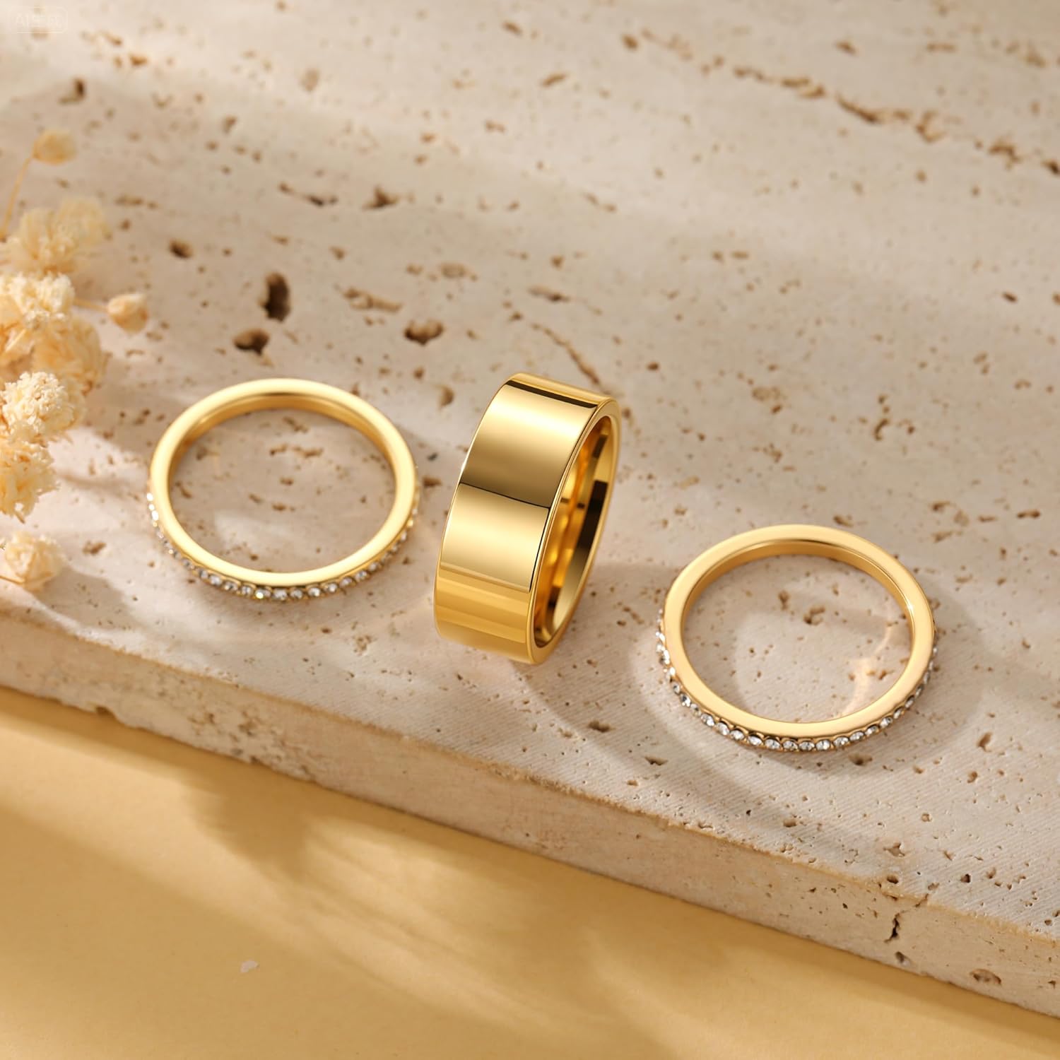 Golden women’s stackable rings,