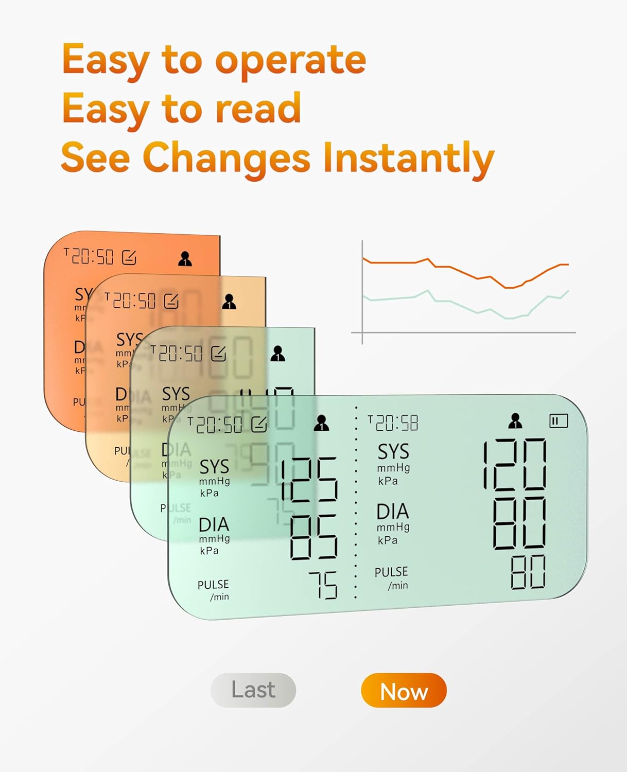Dual-Screen Memory Display: Instantly compare current and previous readings with clear side-by-side results, including measurement dates for easy trend tracking.