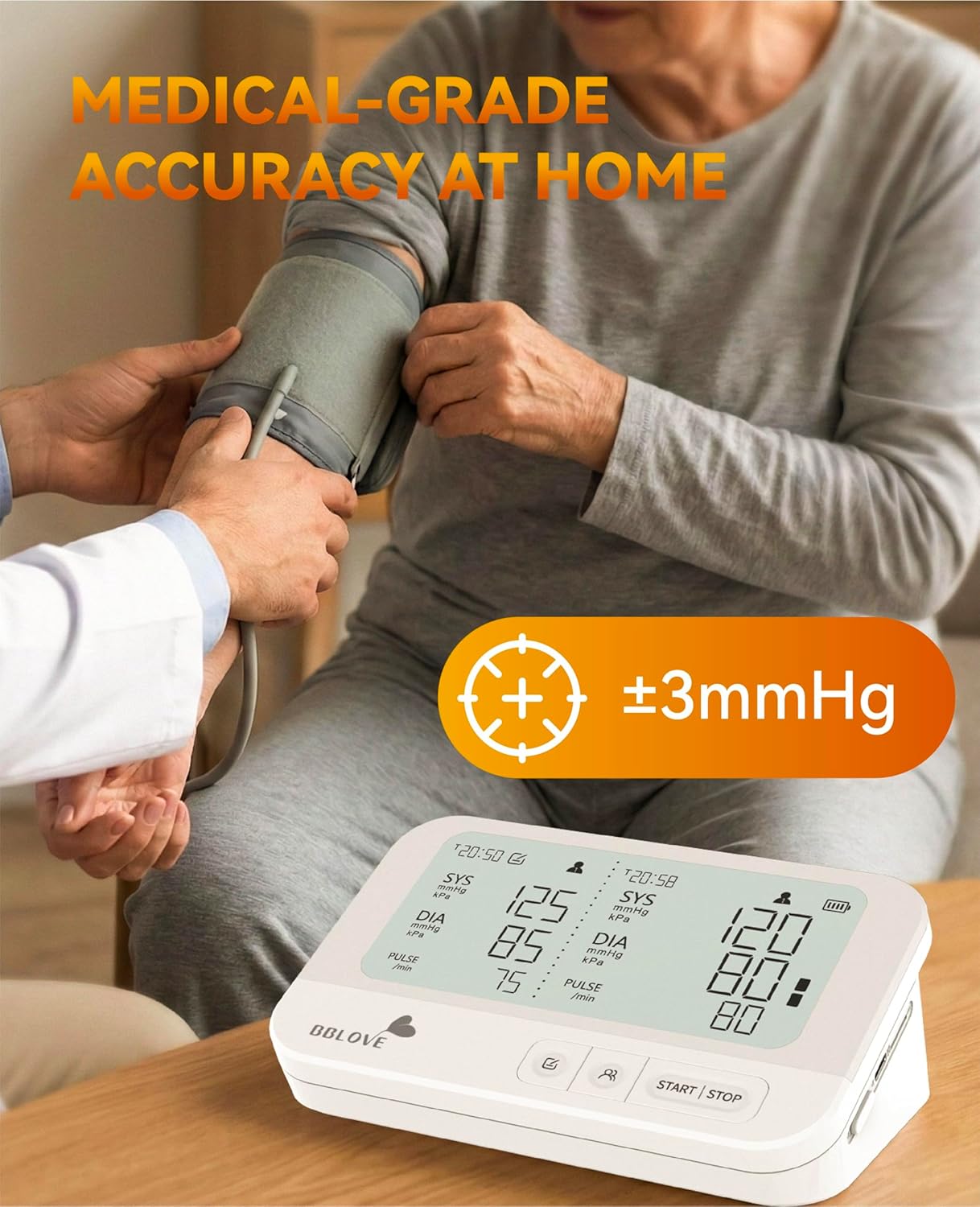 Medical-Grade Accuracy: Clinically validated to within ±3mmHg error margin – delivers hospital-grade reliability for confident home blood pressure monitor.