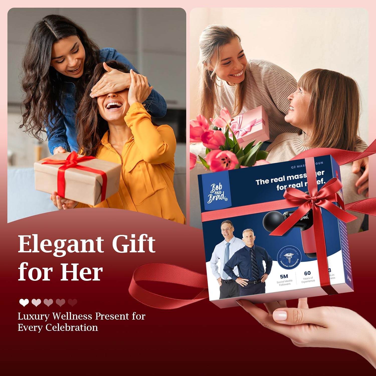 Elegant Red Massage Gift for Her – Designed to delight, this deep tissue massage gun is the perfect present for birthdays, Mother’s Day or holidays. The lustrous red finish and ergonomic shape combine beauty with effective muscle relief. Packaged in a luxury gift box with a premium carrying case. Backed by BOB AND BRAD’s therapy expertise, it’s a thoughtful way to show you care about her wellness.