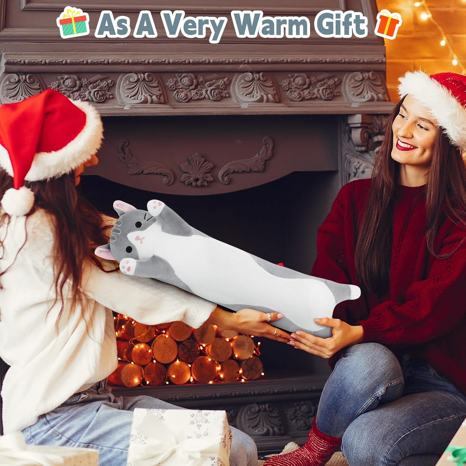 【Cute Gray Cat Stuffed Animals Design】It can be a gray cat plush toy with a 22 inch cat body, soft and skin friendly fabric, full and odorless, easy to hug and lie down. It can also be a heating pad animal, with a heating element inside the cat’s belly, Insert the USB Type-C connector completely into the Type-C port on the gray cat plushie, and then connect the USB connector to a USB power source to start heating.It has a built-in pocket that can hold a power bank or small items, making outdoor use stress free.