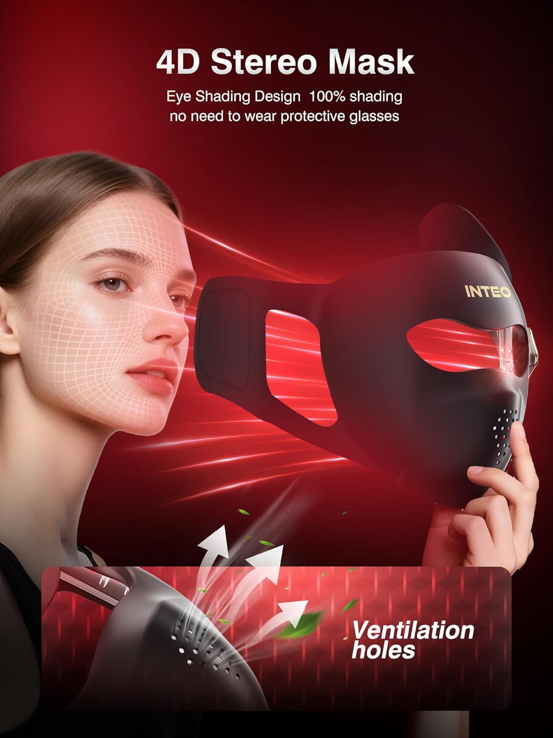 【4D Fit, Breathable Led Face Mask】We’ve redefined comfort! The 4D curved design of the led mask is ergonomically designed to perfectly adapt to various facial contours, ensuring even light coverage. Design with ventilation holes significantly enhances air circulation of red light mask, ensuring a comfortable wear even for extended periods.The specially designed built-in soft eye protection pad gently hugs the eye area, blocking glare, allowing you enjoy your red light therapy with peace of mind.