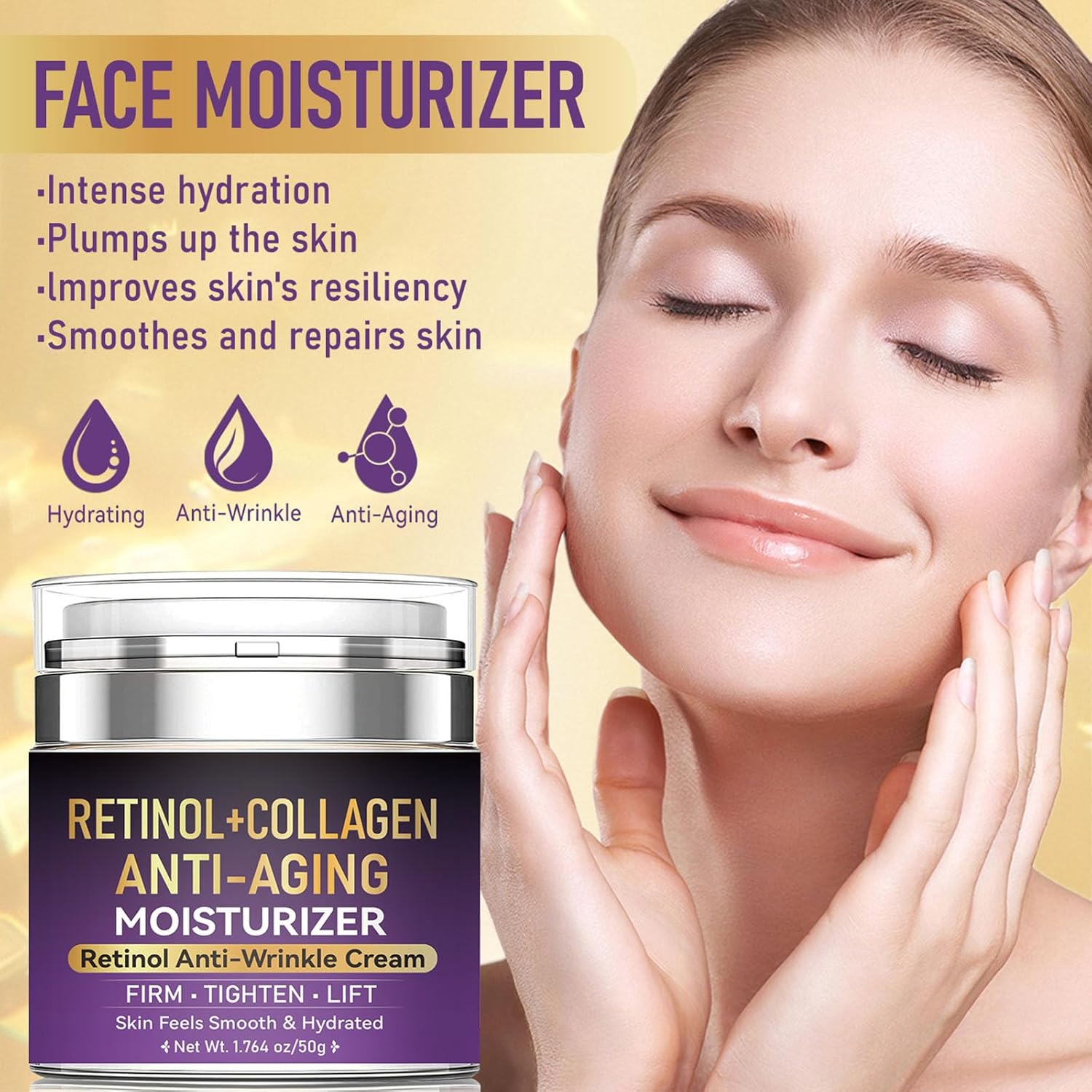 Deep Wrinkle Repair: Anti-aging moisturizer for women is enriched with a blend of retinol and collagen that lifts and firms sagging skin on the face and neck, improves elasticity, and reduces uneven texture in aging areas