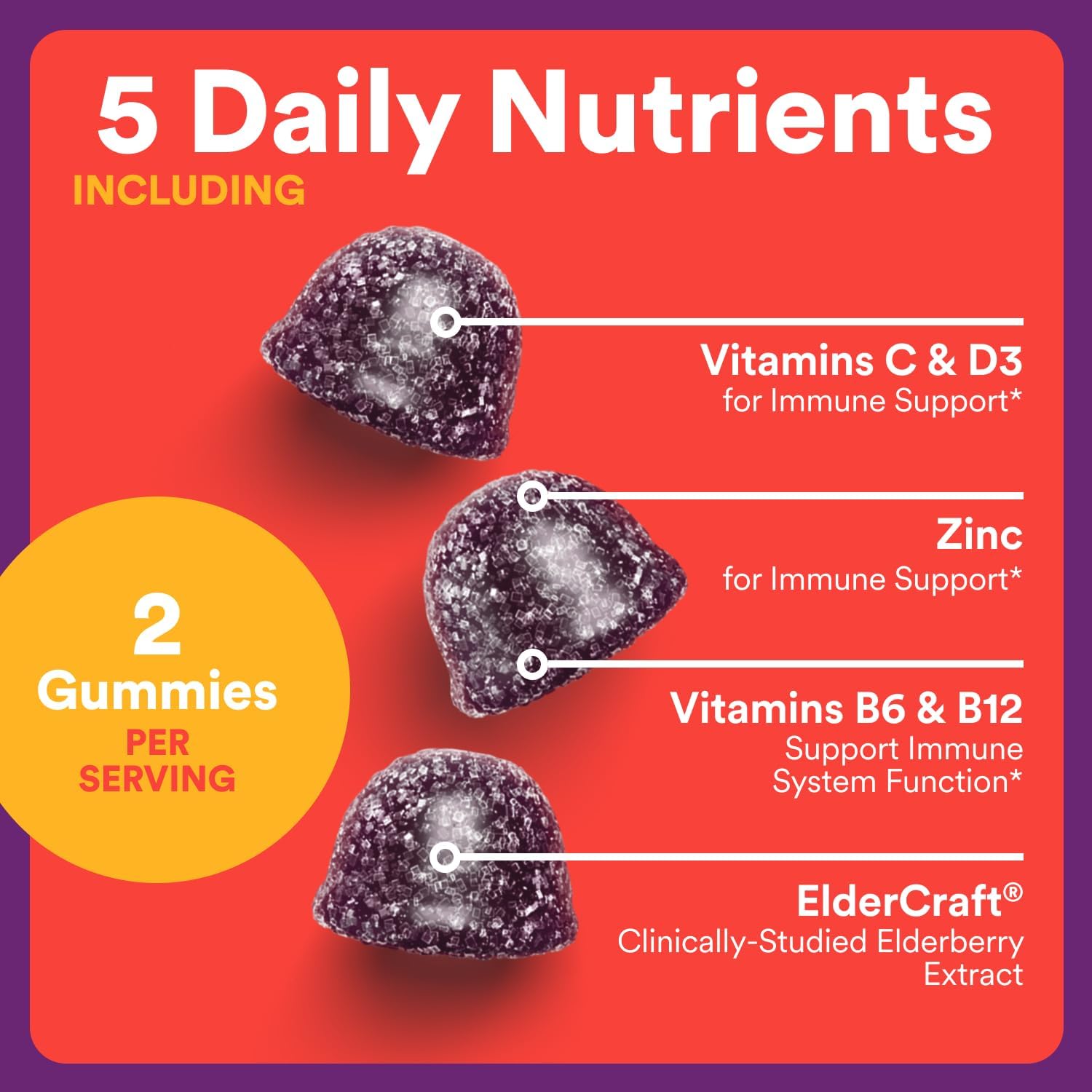CLINICALLY-STUDIED ELDERBERRY EXTRACT: Includes premium ElderCraft, a concentrated black elderberry extract.
