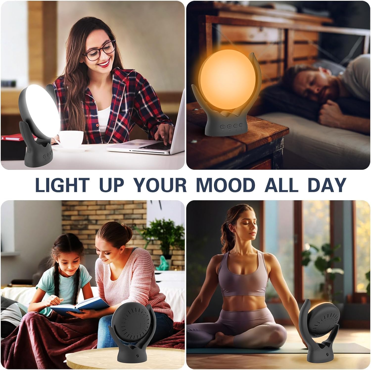 ⸻⭐️⭐️⭐️⭐️⭐️Verified PurchaseReally makes a difference!I bought this sun lamp to help during the darker months, and I’m so glad I did. It’s bright, easy to use, and has several settings so you can adjust the light to what feels comfortable. I usually use it in the morning while having coffee, and it really helps boost my mood and energy. The design is sleek and doesn’t take up much space in my kitchen. Definitely recommend for anyone who struggles with the winter blues!